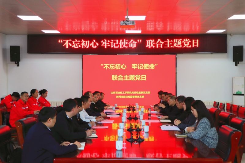 10月24日上午,山东石油化工学院机关纪检监察党支部与胜利油田纪检监督部党支部联合开展了“不忘初心,牢记使命”主题党日活动。
